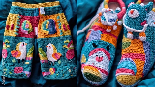 Vibrant Crocheted Shorts Featuring Animated Characters and Whimsical Footwear: Perfect for Sports Interior Posters and Fun Summer Fashion