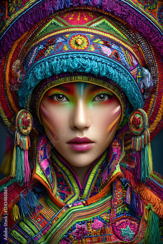 portrait, embroidery, cultural, beauty, expression, tradition, colourful, artistry, heritage, emotion, identity, culture, aesthetic, elegance, style, modern, design, intricacy, pattern, human, portraiture, fashion, visual, folklore, ethnic, attire, youth, femininity, creativity, festival, inspiration, joy, personality, character, memory, celebration