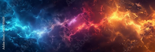 Vibrant digital art with blue and red energy clash, creating bold explosion of color, intense visual impact