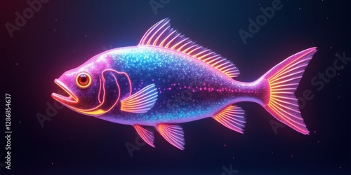 vibrant digital illustration of a colorful fish, showcasing vivid neon colors against a dark background, perfect for creative projects, branding, and marketing.