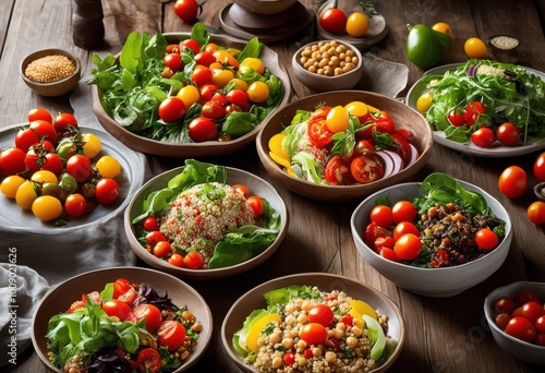 vibrant display fast fresh meals highlighting colorful ingredients enticing presentation side side comparison, bite, dish, cuisine, vegetable, fruit