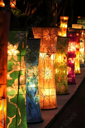 lantern, festival, bricolage, illuminated, procession, night time, display, family, create, large, light, event, traditional, culture, activity, atmosphere, colourful, glow, design, craft, hand-made, paper, string, pattern, flower, silhouette, nature, environment, scenery, landscape, mood, tranquil, peaceful, serene, magical, whimsical, romantic, cosy, warm, festive, joyful, community, gathering, aglow, handcraft, ceremonial, ritual, folklore