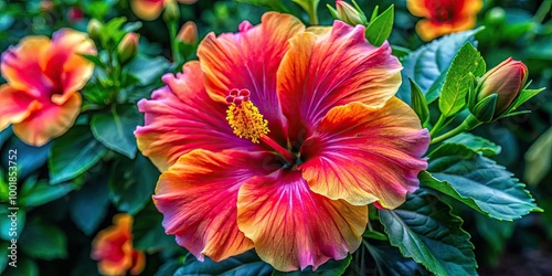 hibiscus, flower, bloom, vibrant, flower petals, tropical, nature, botanical, garden, flora, colourful, closeup, exotic, plant, beauty, summer, blooming, foliage, lush, freshness, natural beauty, floral arrangement, vivid colors, ornamental, paradise, sunlight, gardening, sunshine, flora and fauna, high-coloured, artistic, floral pattern, seasonal, serenity, calmness, tropical garden, landscape, enchanting