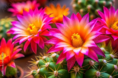 Vibrant Easter Cactus Blooms in Springtime - Close-up Macro Photography