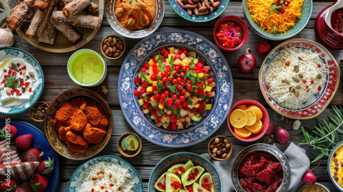 Vibrant Eid Al-Adha Feast., Eid feast, Islamic celebration, Family feast.