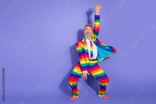 dance, club, man, rainbow, suit, purple, elderly, mature, charismatic, style, disco, party, happy, funky, funny, gentleman, elegant, costume, colourful, stylish, photogenic, beard, personality, diversity, queer, pride, freedom, right, individual, grandfather, senior, pensioner, eccentric, glamour, holiday, celebration, vibrant, expressive, fashion, joyful, unique, advertising, shopping, sex, striking, male, boyfriend, old, age
