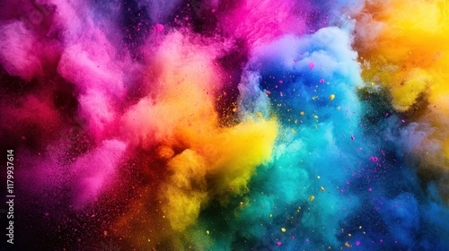 Vibrant Explosion of Colorful Smoke and Dust in Rainbow Shades Creating a Dynamic and Energetic Abstract Background for Artistic Inspirations