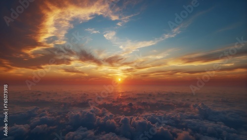 Vibrant fantasy panoramic sunset sky - Gradient rich colors - beautiful summer sunset or sunrise sky. AI generated