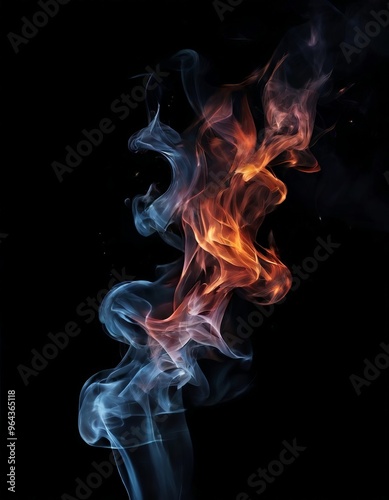 Vibrant flames dance against a dark backdrop, their fiery hues of orange and blue swirling and intertwining in a mesmerizing display.