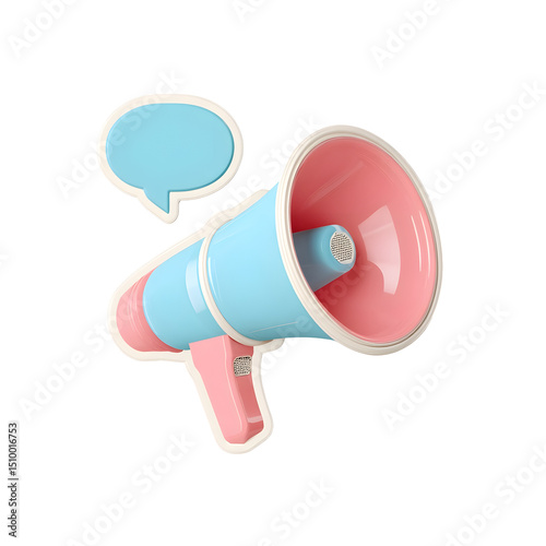 megaphone, speech, bubble, marketing, communication, announcement, promotion, advertising, pink, blue, colourful, flat, design, icon, symbol, business, technology, digital, social, media, message, voice, sound, loudspeaker, amplifier, attention, campaign, branding, strategy, engagement, interaction, client, audience, information, transparency, clarity, concept, idea, visual, creative, modern, minimalist, simple, clean, render, three-dimensional, background