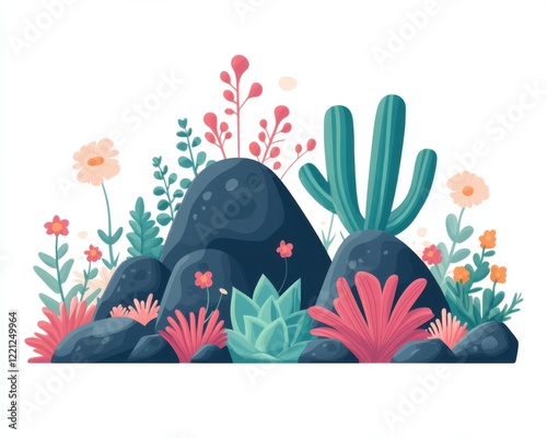 flora, cactus, digital, illustration, and, landscaping, land, artistic, vibrant, visual, serene, shape, design, greenery, lush, element, inspiration, animation, pastel, lovely, environmental, aesthetic, place, display, growth, saturated, graphic, scenery, ecosystem, plant, colouring, earthy, life, delight, rock, scenic, blooming, cultivation, freshness, spring