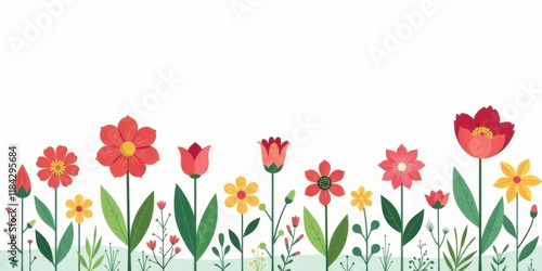 Vibrant Floral Border Featuring a Delightful Array of Colorful Blossoms and Lush Greenery
