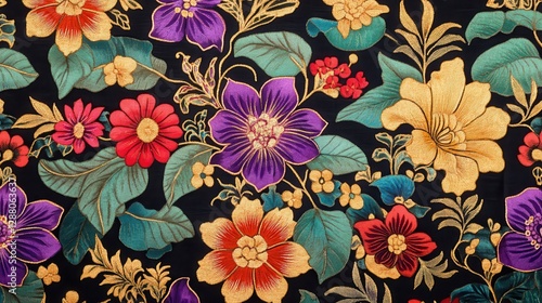 Vibrant Floral Embroidery Textile Close up Texture
