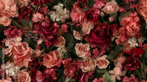 Vibrant Floral Flat Lay with Rich Colors and Delicate Details on Textured Paper Background Illuminated by Soft Natural Light