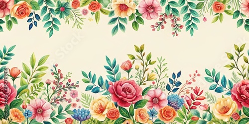 Vibrant floral pattern on a creamy white background, greenery, seamless background