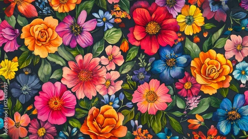 flower, floral, bloom, garden, nature, colourful, botanical, spring, vibrant, background, design, illustration, decoration, foliage, aesthetic, bright, fresh, texture, creative, art, summer, beauty, pattern, arrangement, herbaceous, artwork, flower petals, flora, bouquet, floral pattern, blossom, plant, ornamental, lively, cheerful, artistic, garden design, hand-drawn, vivid colors