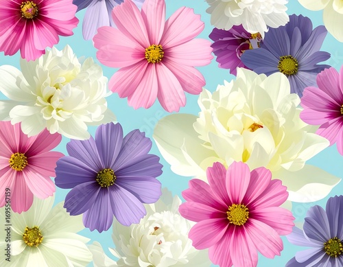flower, floral, pattern, pink, purple, white, pastel, cosmos, peony, design, spring, summer, nature, beauty, colourful, decorative, texture, background, illustration, digital, art, pretty, high-coloured, bloom, arrangement, composite