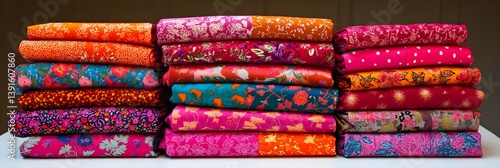 Vibrant Floral Patterned Fabric Stacks Colorful Textile Collection Autumn Hues