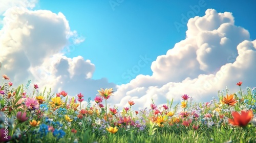 flower, field, spring, summer, meadow, nature, colourful, beautiful, vibrant, sky, cloud, sunshine, grass, plant, blooming, garden, pretty, landscape, summer, flora, colorful flowers, wildflower, spring flower, beauty, fresh, green, yellow, orange, pink, red, purple, blue, nature scene, peaceful, happy, honed, summer flowers, wild, idylli, freshness, happiness, summer day, paradise