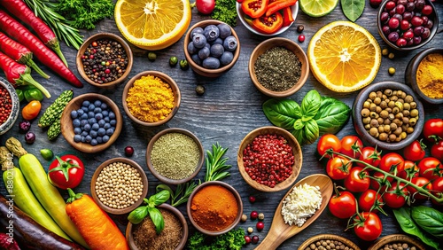 Vibrant food ingredients arranged in a colorful culinary symphony, culinary, symphony, colorful, vibrant, food