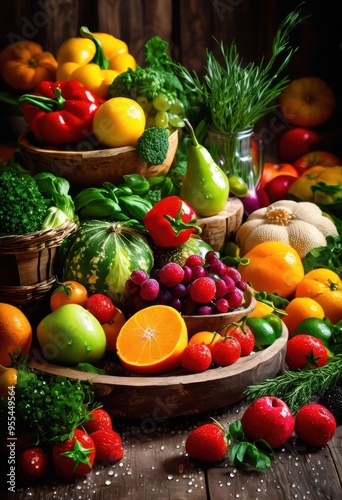 vibrant food visuals showcasing fresh ingredients colorful appealing arrangement, vegetables, fruits, herbs, spices, salad, dish, cooking, freshness