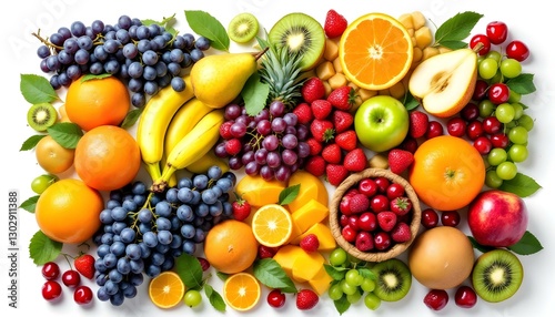 Vibrant fresh fruits, Colorful fruit assortment, Tropical fruit display, Healthy eating, Fruit bowl arrangement