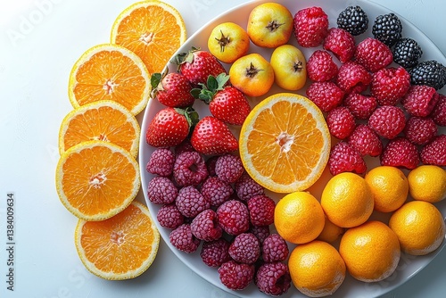 fruit, orange, berry, apple, fresh, vibrant, healthy, colourful, plate, strawberry, raspberry, blackberry, citrous, slice, juicy, ripe, delicious, assortment, nourishment, natural, organic, harvest, vitamin, antioxidant, refreshing, nature, snack, diet, epicure, culinary, sweet, texture, variety, arranged, decorative, edible, produce, market, farm, vegan, raw, breakfast, dessert, seasonal, food
