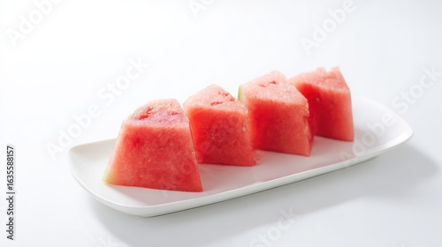 Vibrant Fresh Watermelons Artfully Arranged on a Simple White Plate Presenting a Summery and Inviting Culinary Delight for Refreshing Enjoyment