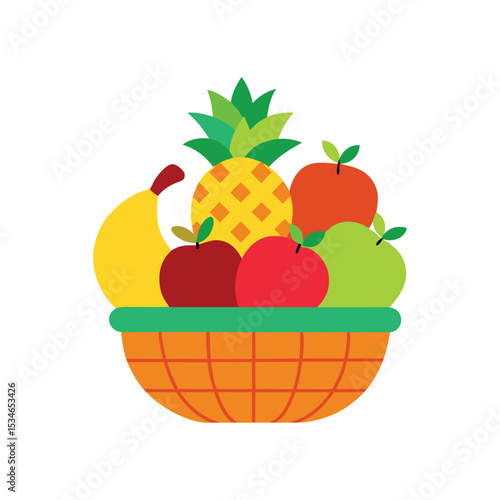 Vibrant Fruit Basket A Delightful Collection of Apples, Bananas, and Pineapple