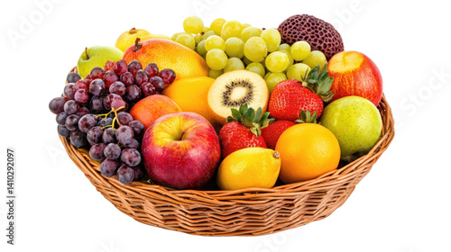 Vibrant fruit basket display kitchen table cutout background bright lighting close-up freshness and health concept