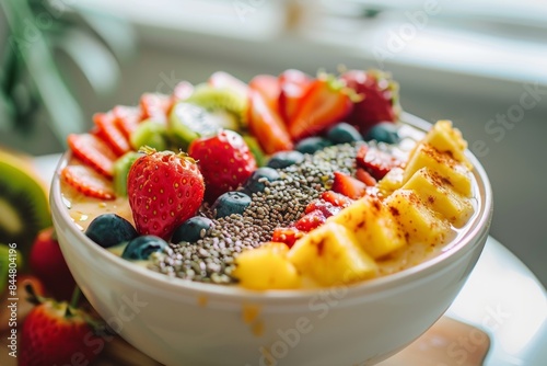 smoothie, bowl, fasting, fruit, kitchen, strawberry, kiwi, blueberry, pineapple, seed, healthy, eating, fresh, vibrant, alimentary, breakfast, meal, diet, colourful, bright, ingredient, nourishment, wellness, culinary, delicious, vegetarian, vegan, food, lifestyle, epicure, homemade, clean, detox, organic, plate, energy, vitamin, nutrient, raw, preparation, wholesome, appetising, berry