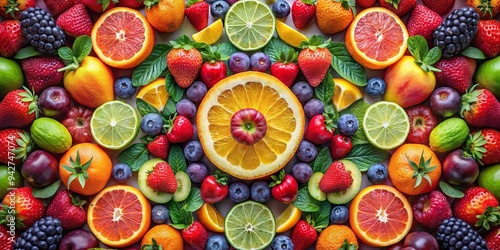 symmetry, colourful, fresh, ripe, arrangement, tropical, healthy, natural, organic, vitamin, bright, juicy, assortment, vibrant, food, topview, still life, creative, display, composition, artistic, aesthetic, photo, produce, harvest, nourishment
