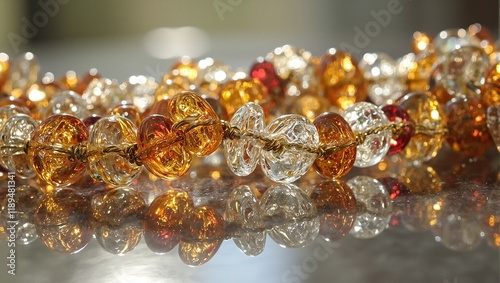 colourful, semitransparent, glass beads, tactile, string, sparkle, natural light, uneven, jewellery, accessory, fashion, closeup, shiny, craftsmanship, hand-made, ornament, beauty, feminine, stylish, elegant, luxurious, decorative, shine, gemstone, sparkling, artistic