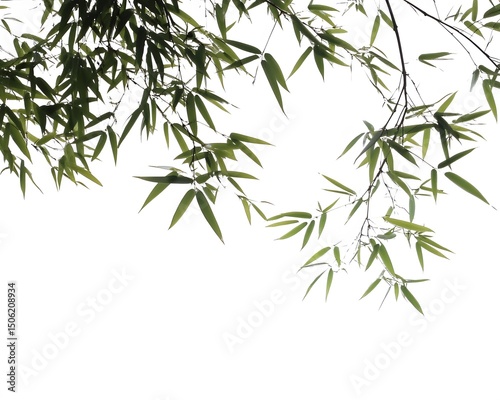 Vibrant Green Bamboo Leaves Branch Isolated on White Background