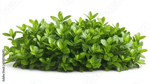Vibrant green boxwood shrub with lush leaves on white background