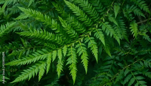 Vibrant Green Fern Leaf Texture Highlighting Nature's Intricate Patterns in a Tropical Background