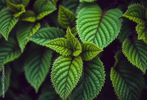 Vibrant green leaves, intricate details, sharp focus, plant life, image
