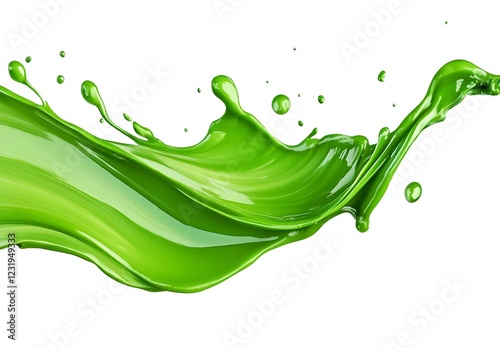 Vibrant green paint fluid flowing on a white background, creates a visual effect, generative AI