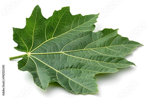 Vibrant Green Papaya Leaf Isolated on White Background