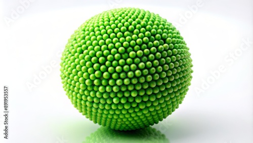 Vibrant green sphere entirely covered in tiny green dots, resting on a clean white background, symbolizing fun and playfulness.