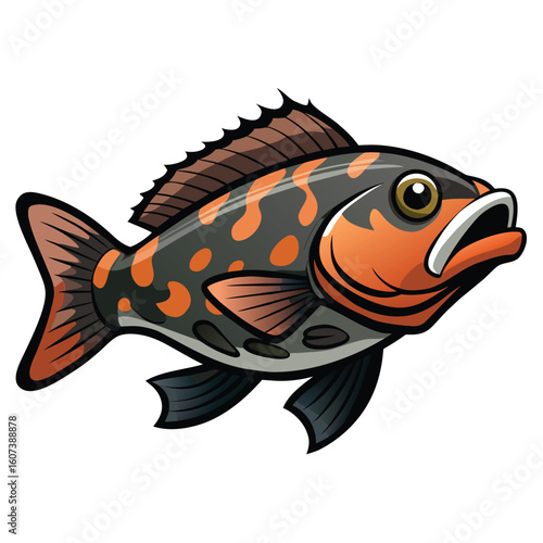 Vibrant grouper fish illustration isolated on white background for aquatic design