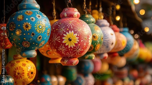 ornament, decorative, indian, hand-painted, colourful, hanging, painted, art, craft, tradition, traditional, culture, design, festival, market, ethnic, vibrant, beautiful, hand-made, artisan, india, gift, souvenir, home, decor, decoration, holiday, celebration, light, pattern, texture, glossy, shiny, round, sphere, ornament, stall, display, object, accessory