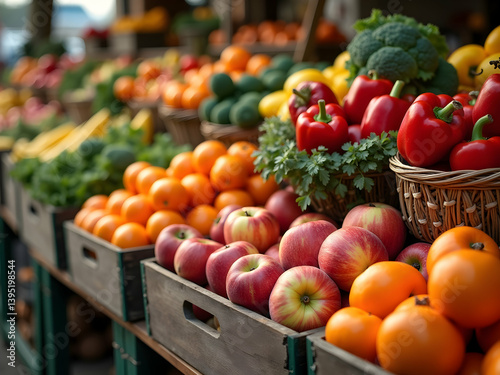 produce, harvest, autumn, fresh, market, food, healthy, vegetable, fruit, abundance, apple, orange, pepper, broccoli, parsley, basket, arrangement, display, nourishment, vitamin, vibrant, colourful, delicious, ripe, natural, agriculture, farming, seasonal, local, organic, vegetarian, vegan, epicure, culinary, ingredient, cooking, raw, gastronomy, marketplace, assortment, choice, offering, stack, pile
