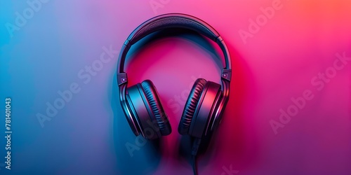 Vibrant Headphones on Neon Gradient Background Capturing Modern Audio Listening Experience and Personalized Music Trends