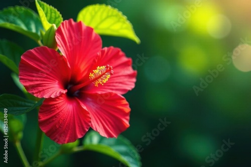 Vibrant hibiscus blossom, sunlight dappled leaves, macro, beautiful, natural
