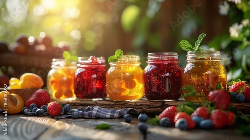 Vibrant Homemade Jams in Glass Jars for Foodie Delights Generative AI