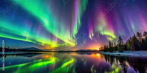 Vibrant hues of the Northern lights dancing across the night sky , Aurora borealis, vibrant