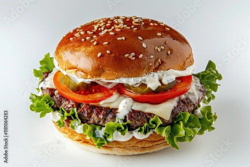 Vibrant Image of Tasty Popper Burger Creamy Isolated on White Background