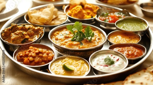 Vibrant Indian Cuisine Platter with Varied Dishes