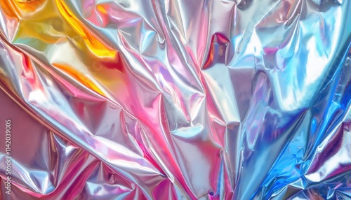 Vibrant Iridescent Holographic Wrinkled Foil Texture with Colorful Metallic Reflections for Design Projects, Digital Art, Wallpapers, Packaging Concepts, Creative Branding, and Futuristic Visuals